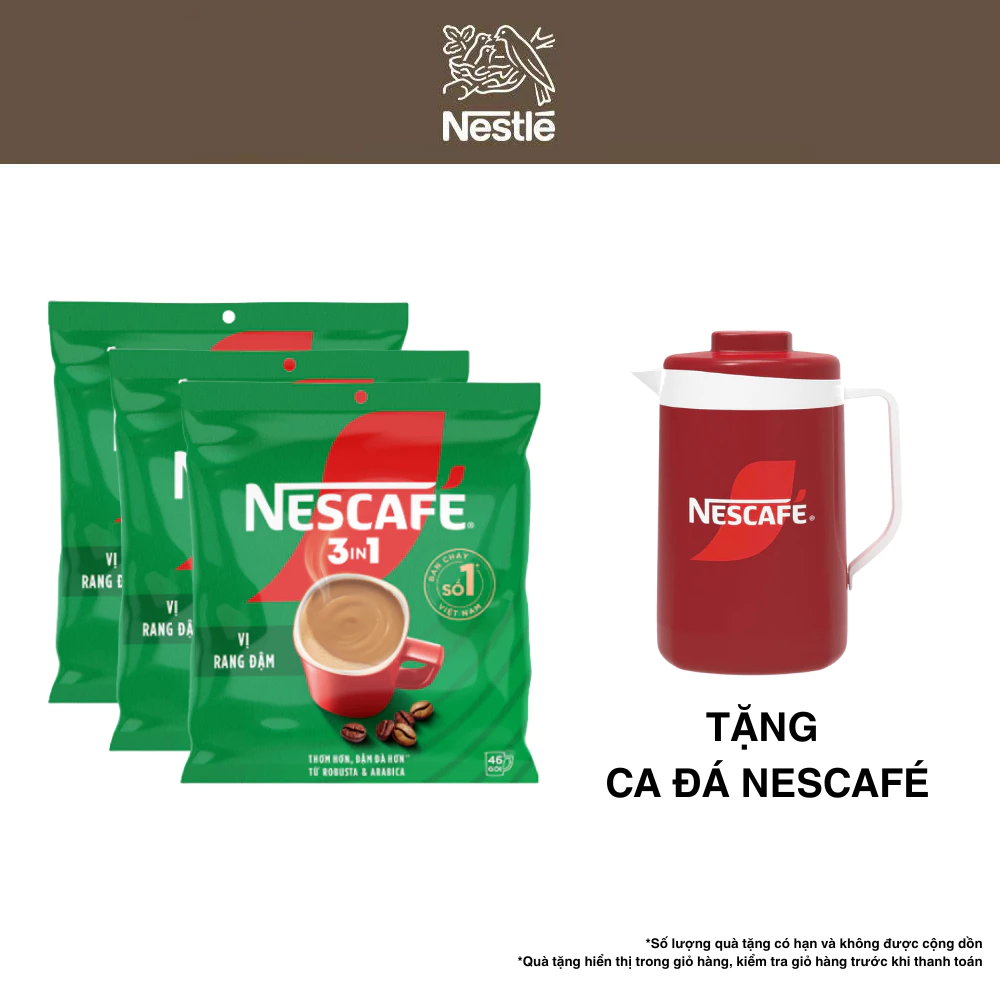 Combo 3 Bịch Cà phê Hòa tan NESCAFÉ VỊ RANG ĐẬM 46 gói Đậm Thơm Hoàn Hảo