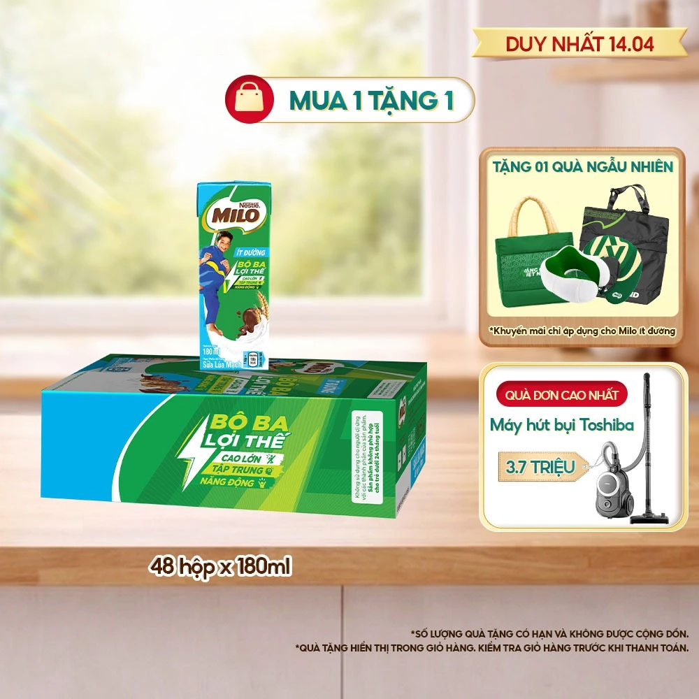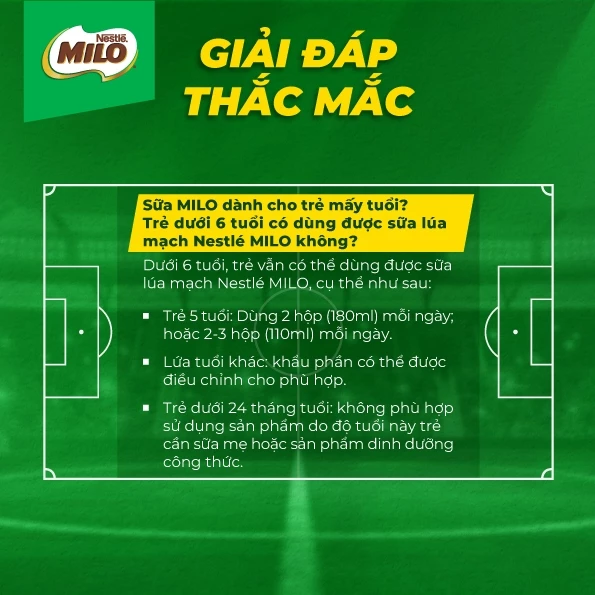 Khuyến nghị: dùng 2 hộp MILO Ít Đường 180 ml hoặc 3 hộp MILO Ít Đường 110 ml mỗi ngày
