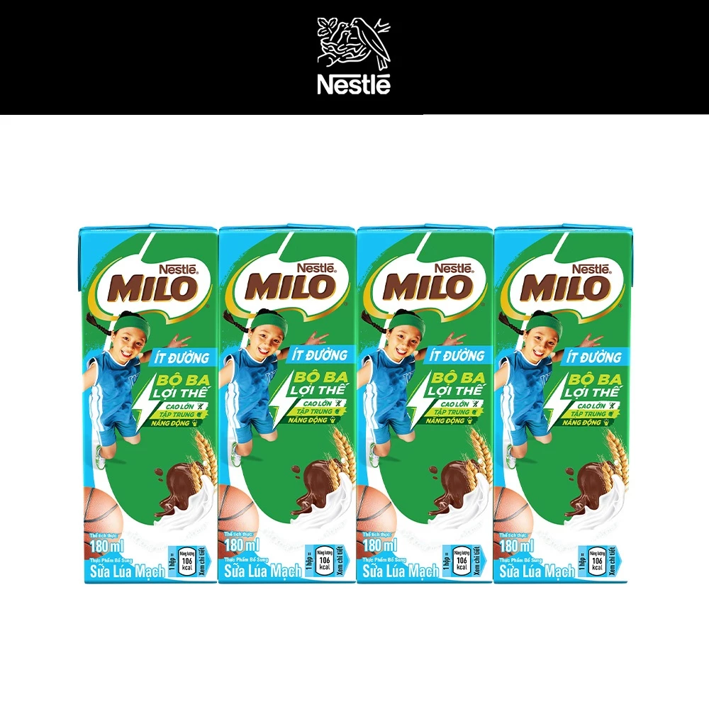 Sữa lúa mạch Nestlé® MILO® ít đường thùng 12 x 180ml (12x4x180ml)