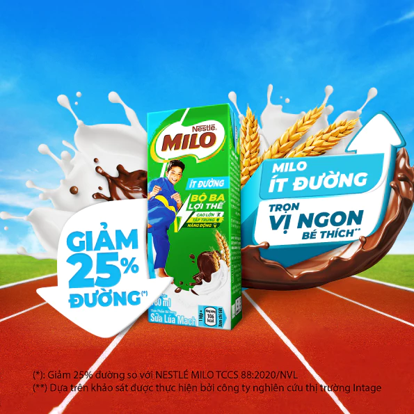(**) Giảm 25% đường so với NESTLÉ MILO TCCS 88:2020/NVL